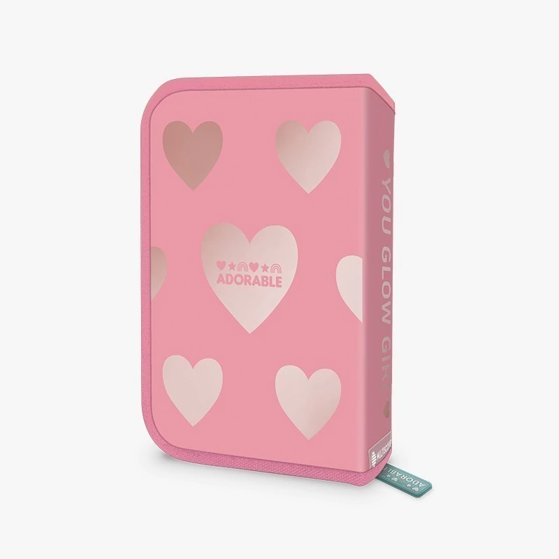 Interior: 1 amplio compartimento transparente con cierre y diseño impreso para colocar elementos sueltos, 24 elásticos para acomodar lápices y 3 elásticos más anchos para otros útiles