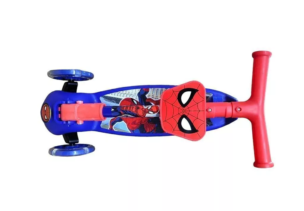 CARACTERISTICAS SOPORTA HASTA 40KG + 3 RUEDAS DE SILICONA + MANUBRIO REGULABLE DE 4 ALTURAS VIENE CON UNA BANDEJITA IMANTADA CON MOTIVO DE SPIDERMAN LA ALTURA MAXIMA ES DE 75 CM DE ALTURA (MEDIDO DESDE LA BASE DE LAS RUEDAS HASTA EL MANUBRIO) LA ALTURA MINIMA ES DE 58 CM DE ALTURA EL LARGO ES DE 52 CM APROX. CUENTA CON LUCES EN LAS RUEDAS DELANTERAS RECUERDE QUE PARA SABER CUAL ES EL MONOPATIN IDEAL PARA SU NENE ES EL PESO ESTE MONOPATIN SOPORTA HASTA LOS 40 KG