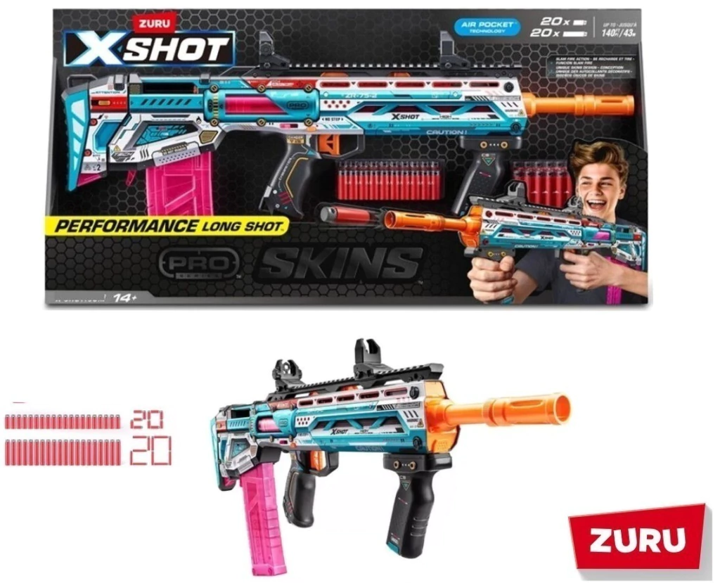 Conviértete en profesional con el X-Shot Skins Pro Series Longshot Blaster. El Longshot está diseñado para lograr precisión y distancia en cada disparo. Equipado con 2 clips de dardos de liberación rápida, el Longshot es compatible con dardos de longitud completa y media, y ambos incluyen la tecnología X-Shot Air Pocket para un vuelo más lejano, más rápido y más estable. ¡Usa Slam Fire Action para disparar el clip de 20 dardos en segundos y eliminar objetivos a una distancia de hasta 43 m / 140 pies! Sube de nivel con la serie X-Shot Pro. Go Pro: Elimina objetivos a una distancia de hasta 43 m / 140 pies. Compatible con dardos de longitud completa y media: Equipado con 2 clips de dardos de liberación rápida, el Longshot es compatible con dardos de longitud completa y media. Slam Fire Action: usa Slam Fire Action para atravesar el clip de 20 dardos en segundos. Dardos con tecnología Air Pocket: ¡Incluye dardos con tecnología Air Pocket para una explosión más lejos, más rápida y más precisa! El paquete incluye: 1x X-Shot Skins Pro Series Longshot Blaster 2x Clips para dardos 20x Dardos de longitud media X-Shot Pro Series 20x Dardos de longitud completa X-Shot Pro Series.
